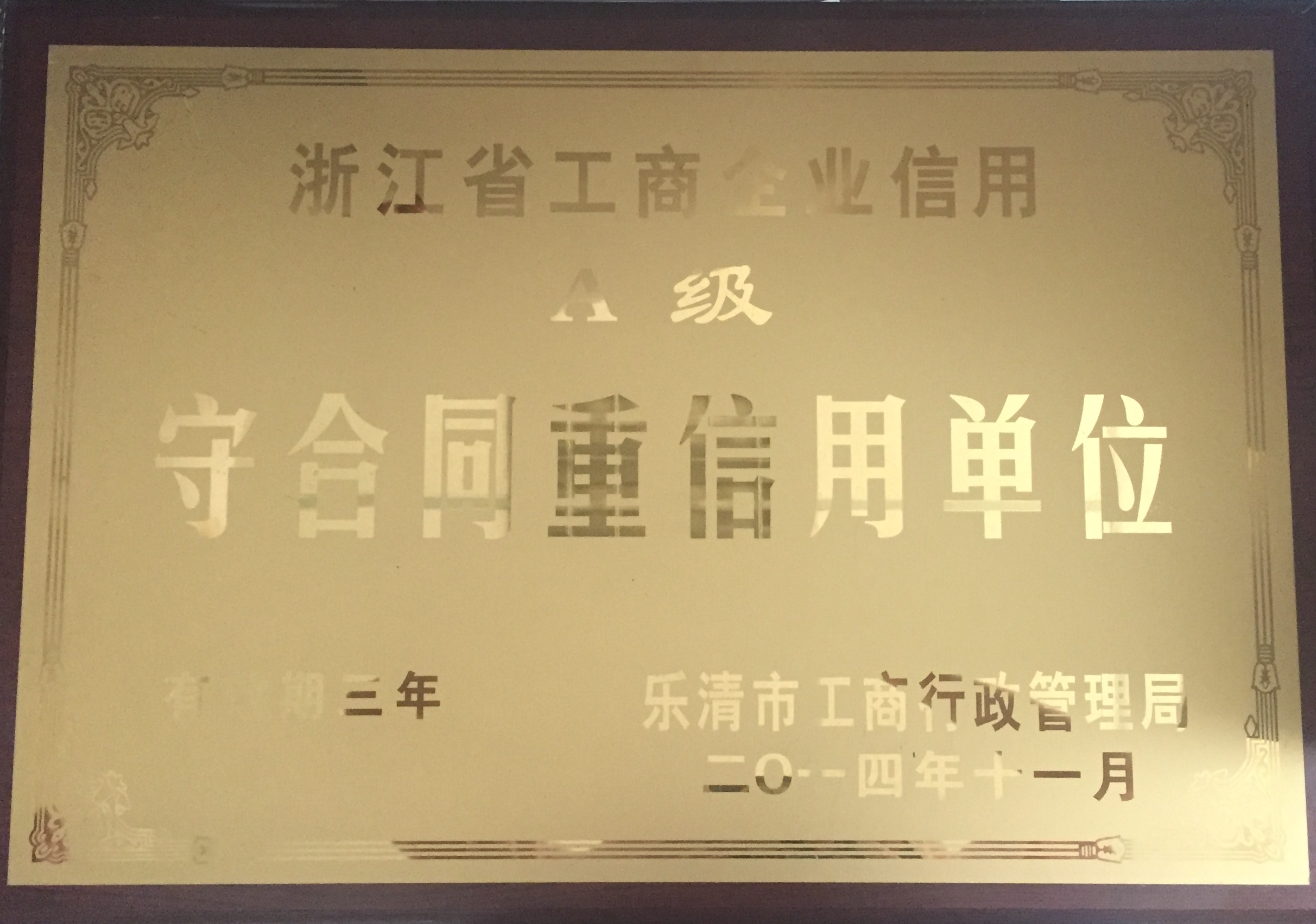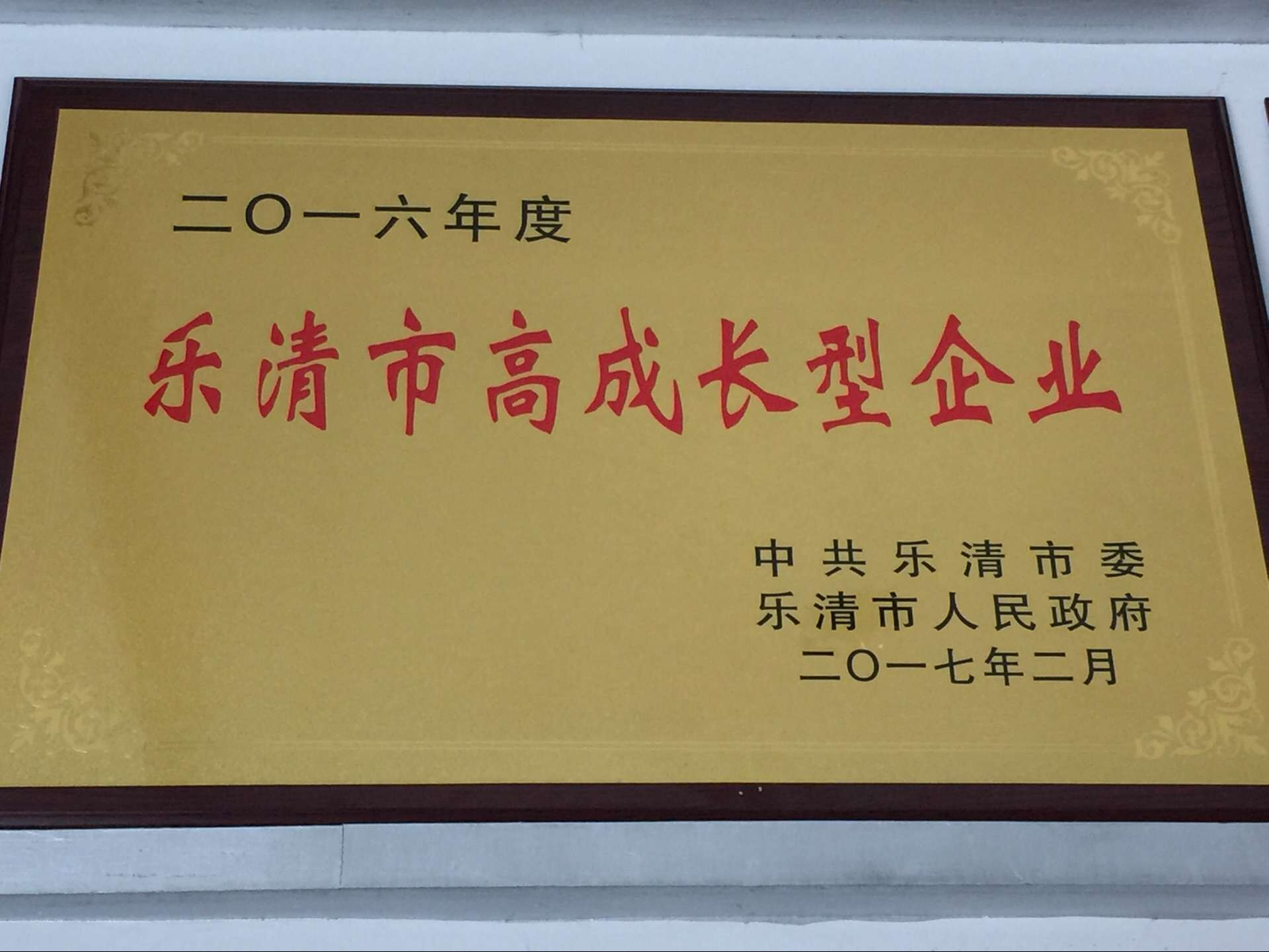 2016年樂(lè)清高成長(zhǎng)型企業(yè) A級(jí)守合同重信用企業(yè) 工會(huì)合格職工之家