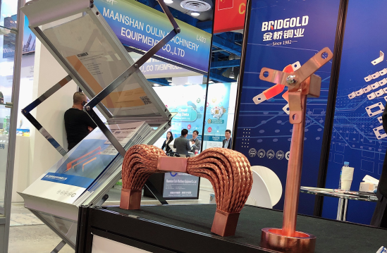 此次參展,金橋銅業(yè)攜眾多產(chǎn)品在M400展臺展出,向來自世界各國的朋友們展示金橋銅業(yè)在新能源汽車、電工電氣和風(fēng)力發(fā)電等領(lǐng)域取得的成果。金橋“風(fēng)車”似的產(chǎn)品(銅箔軟連接和銅件的完美結(jié)合),吸引參觀者匯聚金橋展臺,通過參展人員的介紹讓參觀者對金橋品牌的支持和服務(wù)非常清楚,從而使許多客戶表示出極大的興趣,其中就包括LG和豐田。