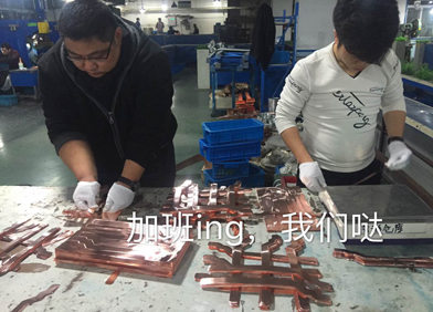 現(xiàn)在是2017年12月18日,星期一晚上23點(diǎn),天氣還是比較寒冷的,但是我們金橋銅業(yè)的小伙伴們還在擼起袖子加班生產(chǎn)新能源汽車銅箔軟連接,絲毫感覺不到寒意,反而有點(diǎn)熱的要命。